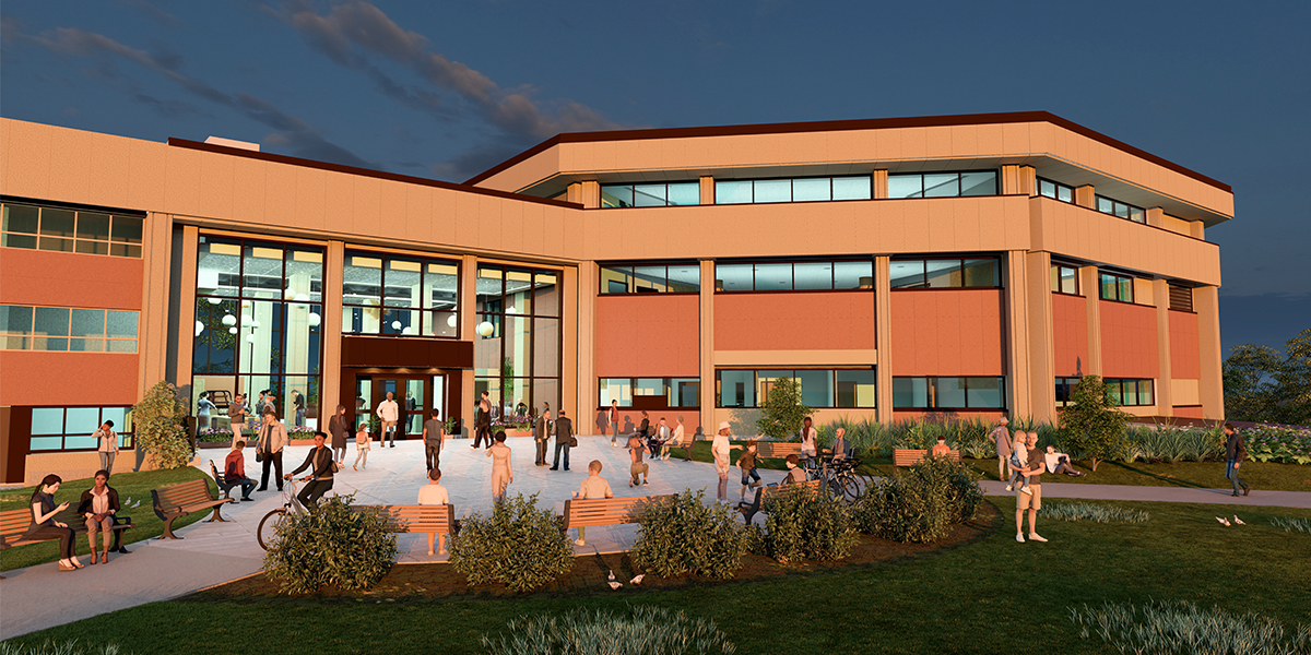 The concept design photos are renderings of the initial vision and direction of design for the R.P. Bell Library Centre for Innovation and Learning. The images displayed do not represent the final finishes such as furniture, fixtures, and colours.