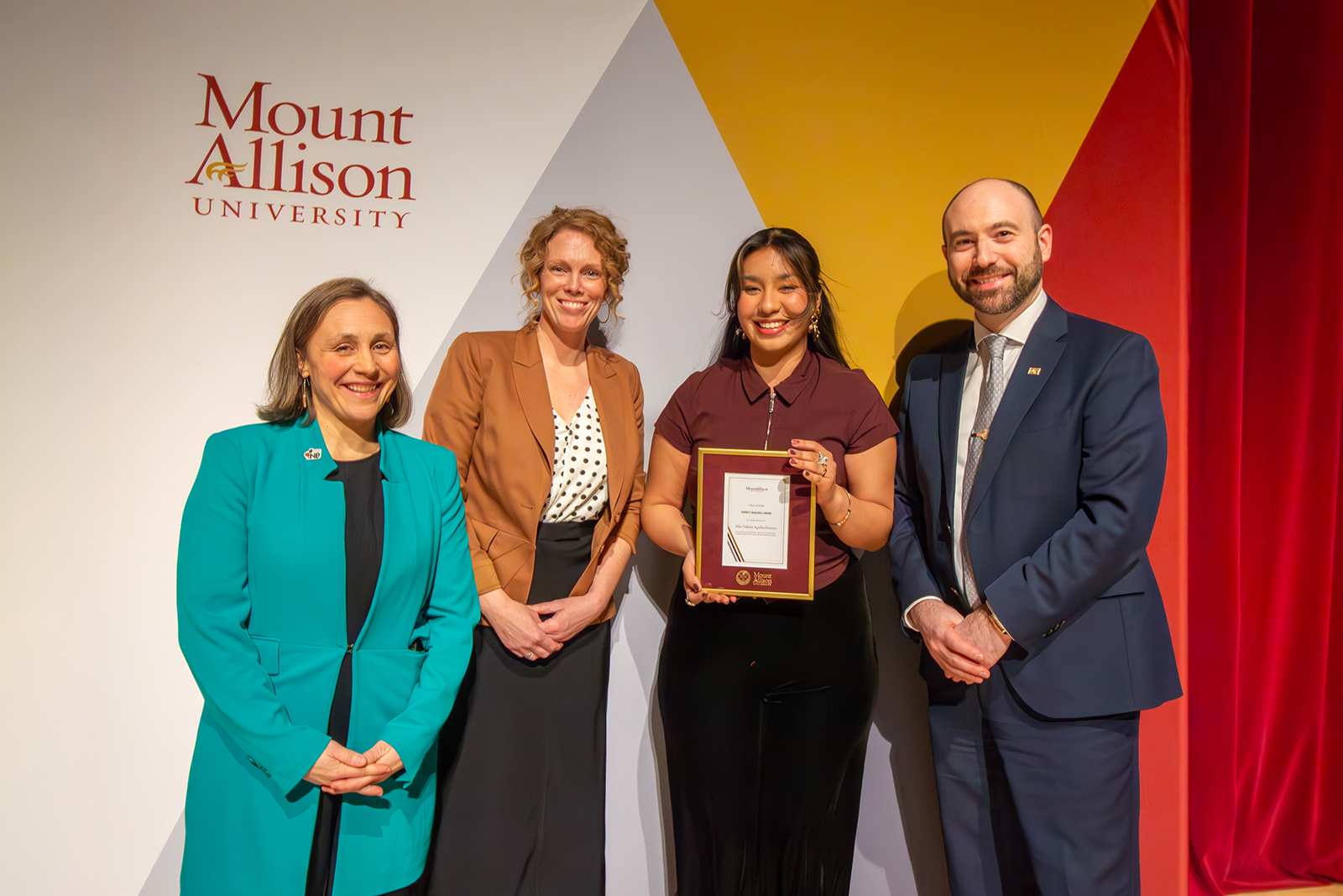 The Barritt-Marshall Award went to Aiko Valeria Aguilar Jiménez. The award honours the graduating international student who has made an outstanding contribution to the internationalization of campus and the support of international students at Mount Allison.