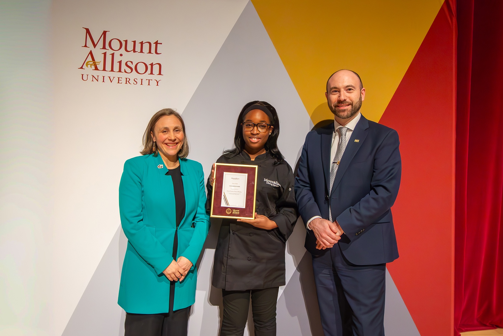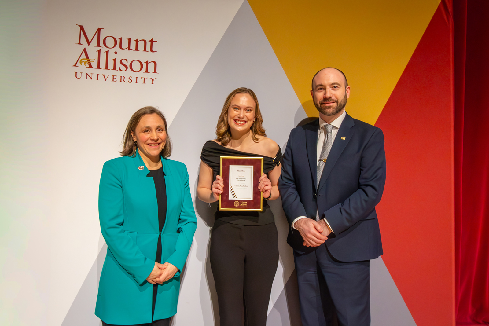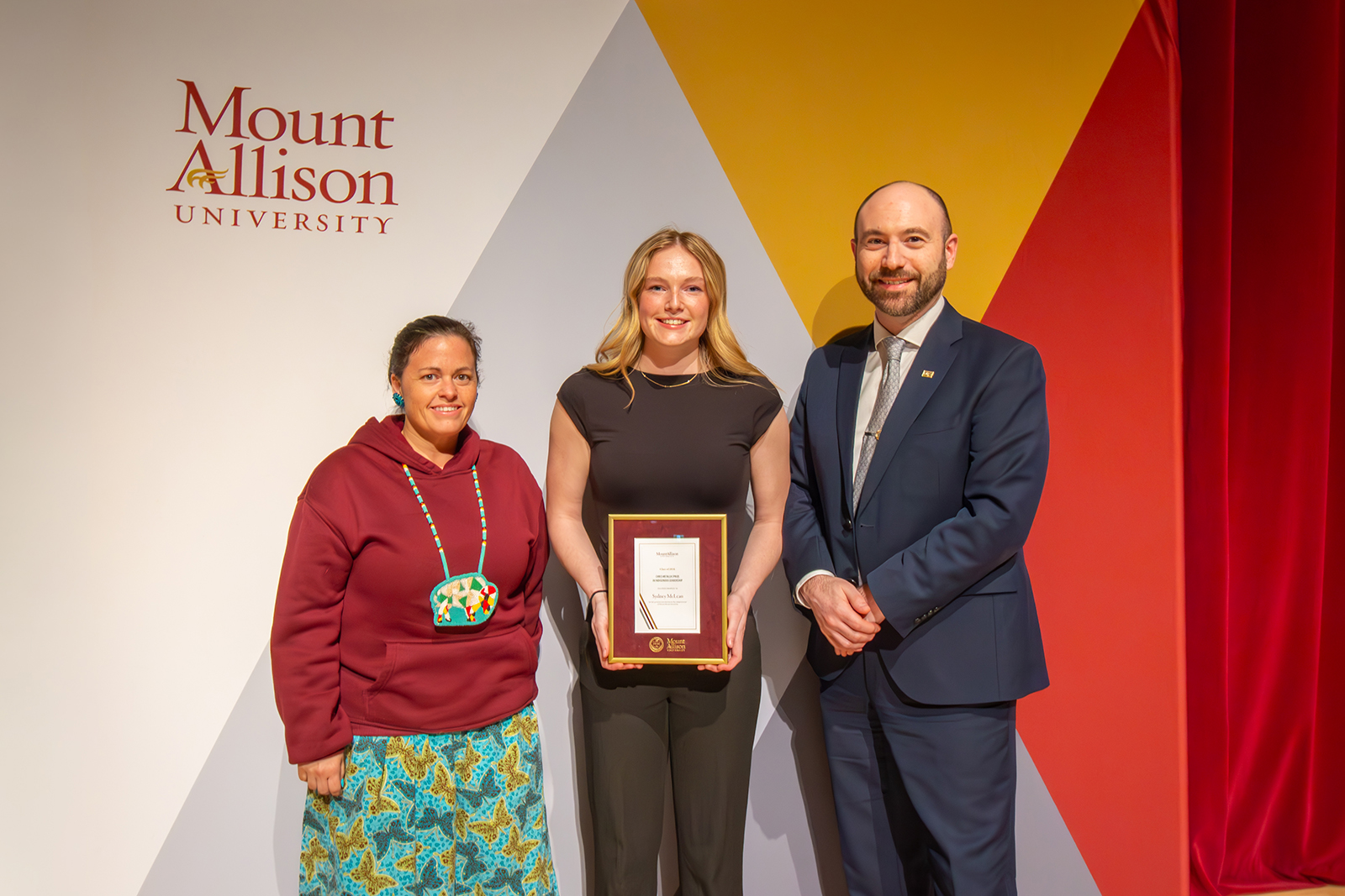 The Chris Metallic Prize in Indigenous Leadership was awarded to Sydney McLean. The award was established by the Class of 2016 and recognizes a student who has exhibited leadership and contributed to the indigenization of the Mount Allison campus.