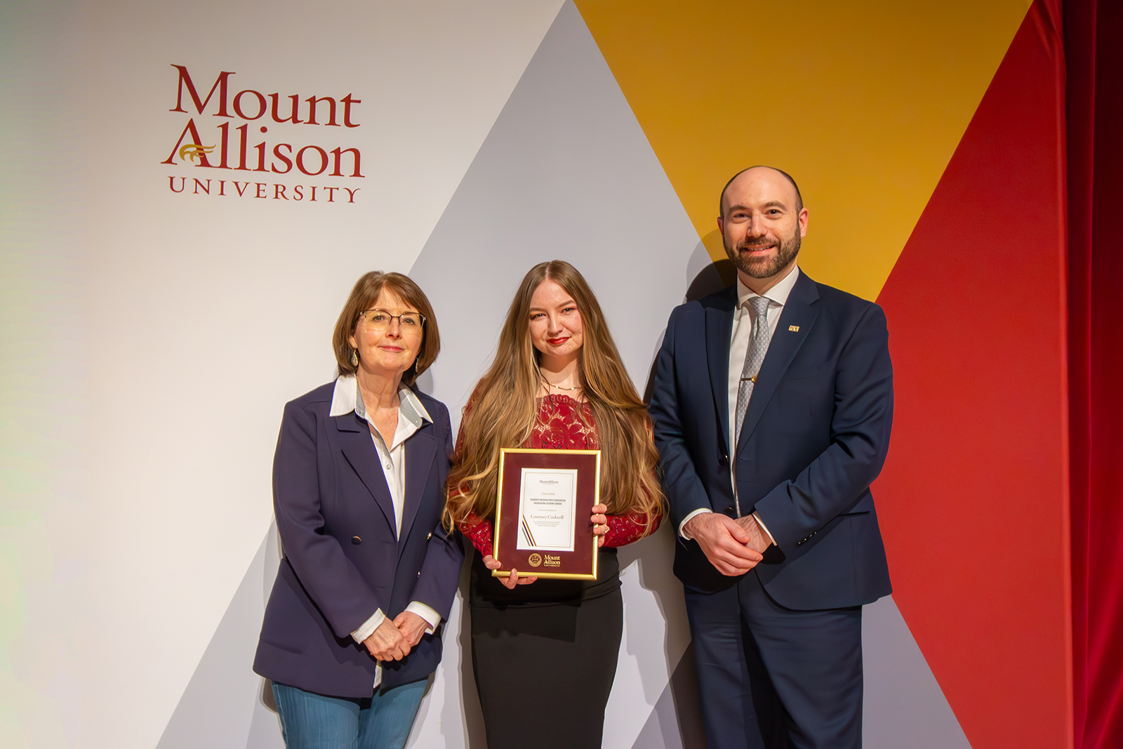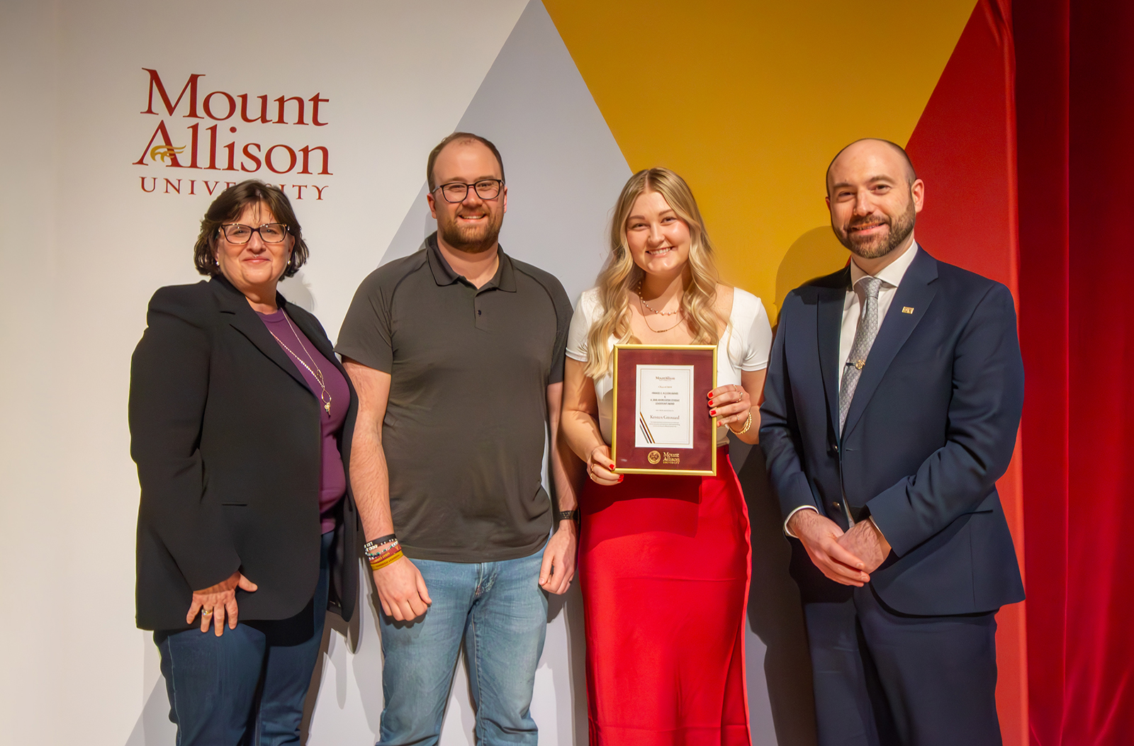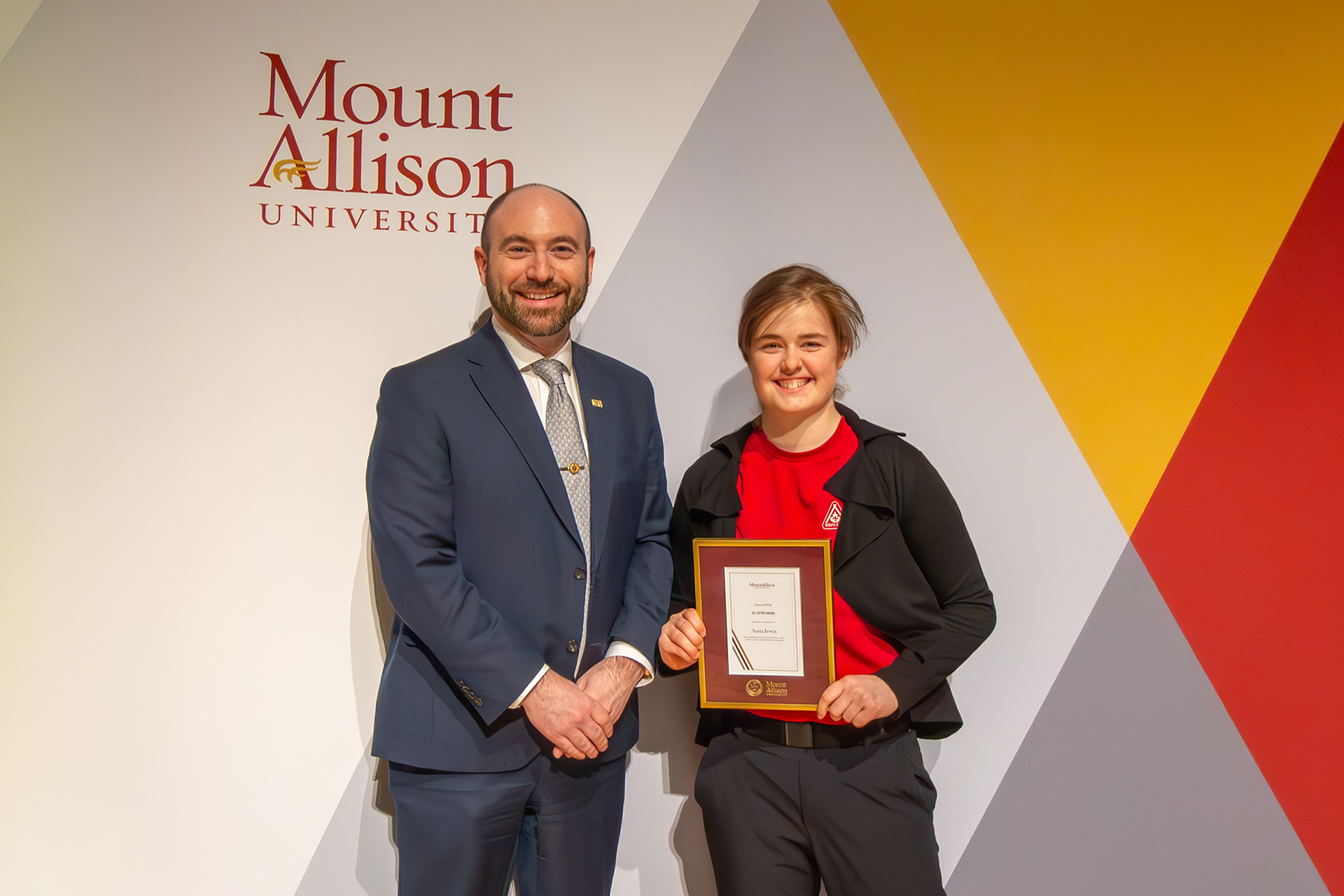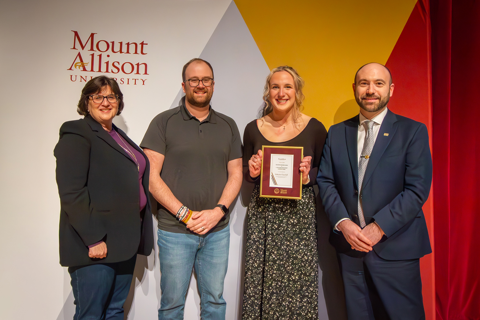 The MASU TA Excellence Award was presented to Marissa Gilbert. The award honours a full- or part-time student at Mount Allison University who has been a TA for at least one course during the academic year in which the award is presented. Nominees are evaluated on three criteria: commitment, going above and beyond, & course engagement.