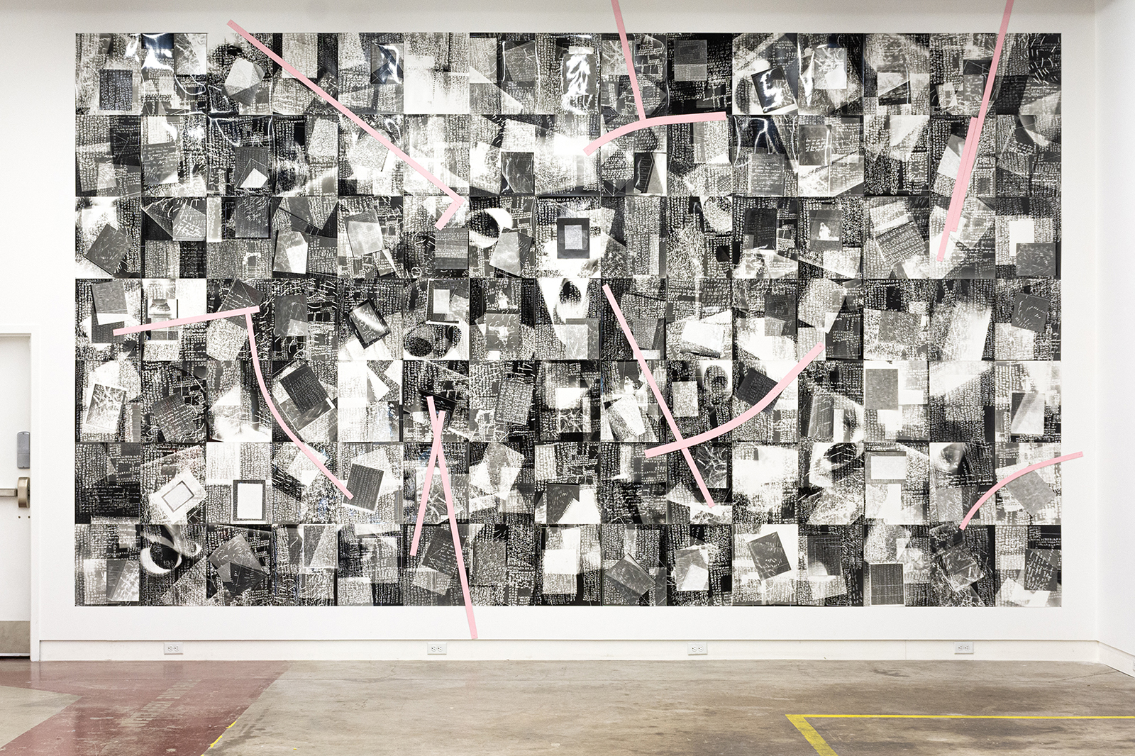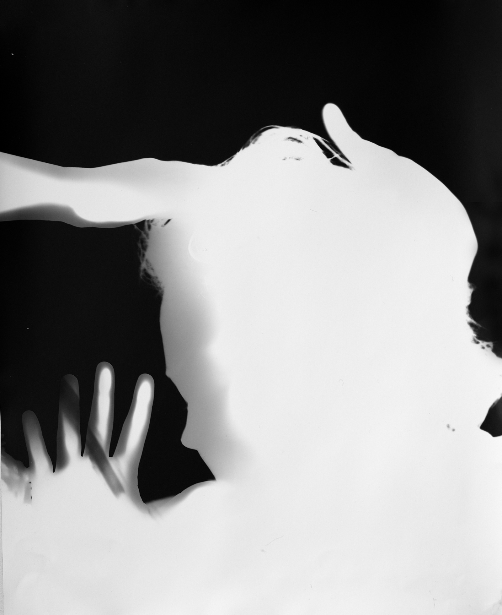 “In the context of our society, there is often a need to make visible or legible oneself to the dominant viewership or society. In the case of the photograms, I am using the light of the enlarger within a shared, queer community, and generating documents that are abstract and gestural while also looking somewhat forensic or x ray like. This movement between recognition and abstraction, truth and gesture, document and shadow are all important ways of considering the queer archive as a place of opacity and visibility.”