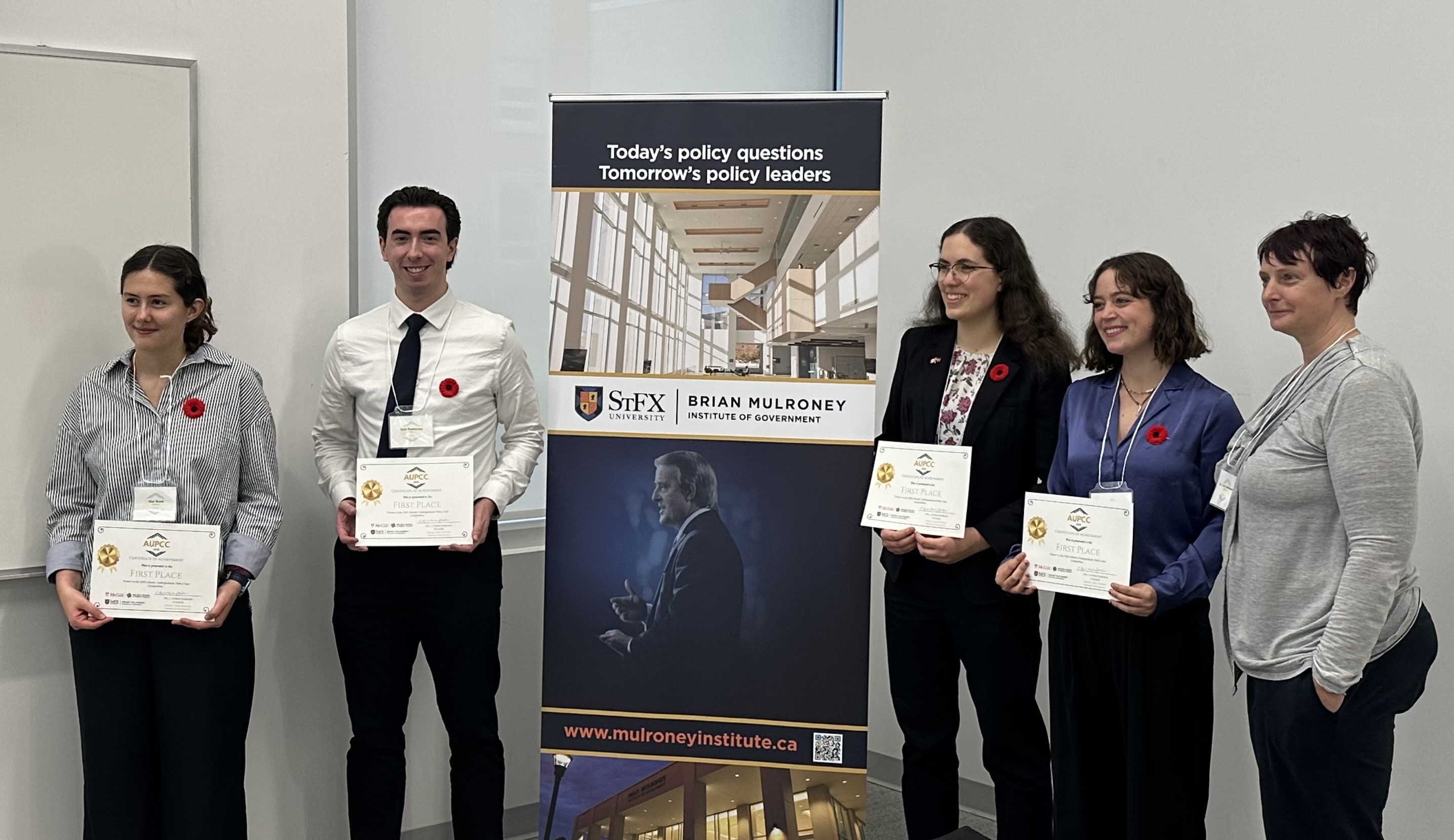 A team of Mount Allison University students from the Frank McKenna School of Philosophy, Politics, and Economics (PPE) has captured first place for the second consecutive year at the Atlantic Undergraduate Policy Case Competition held recently at St. Francis Xavier University.