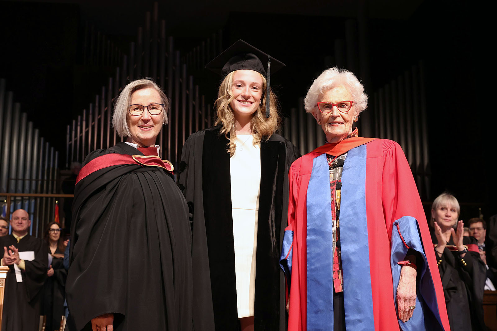 “It was really special to have Catherine at the ceremony. She and my grandmother (Jean Probyn ’59) have been lifelong friends since meeting at Mount Allison,” says McCarvell. “It really speaks to the power of a small community, where things like this can happen. It inspires me to give back to the people that worked so hard to earn these accomplishments.”