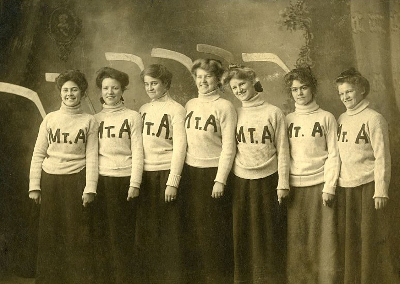 If you’re lucky enough to tour the Mount Allison women’s hockey team’s locker room, you can’t help but feel Mountie Pride. Behind the garnet-coloured door on the ground floor of the Veterans Memorial Civic Centre, amid high-tech gear and Birkenstocks, photos are prominently displayed from the team’s earliest days in 1902. This entrance tells a story of deep, rich, and groundbreaking history that the 2025-26 team continues in its 123rd season.