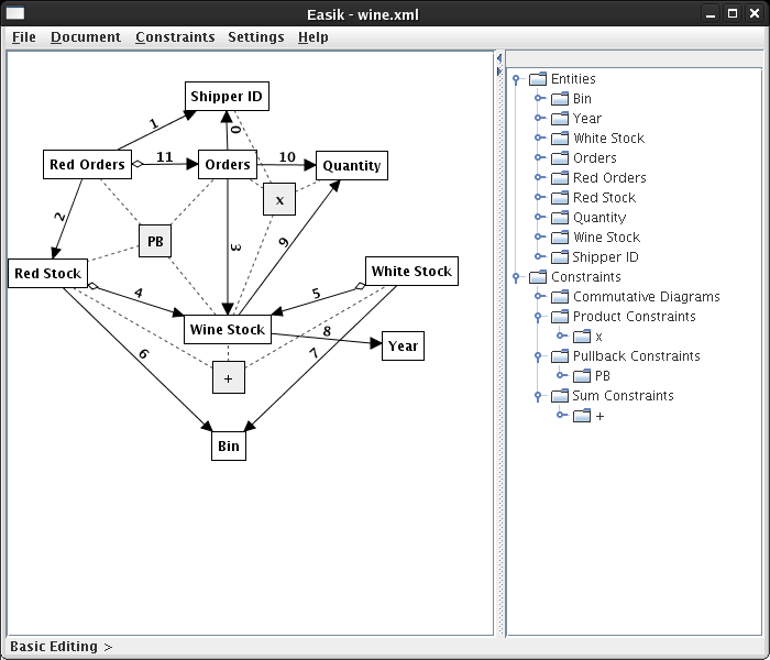 Easik is a Java based development kit for EA sketches. Easik allows graphical modelling of EA sketches, and exporting the sketch information to define a database is as quick as a click of the mouse. These help pages describe how to start a new sketch, open an existing sketch, export the current sketch to a database schema, add entities and attributes to the sketch, add edges between the entities, remove elements, and much more.