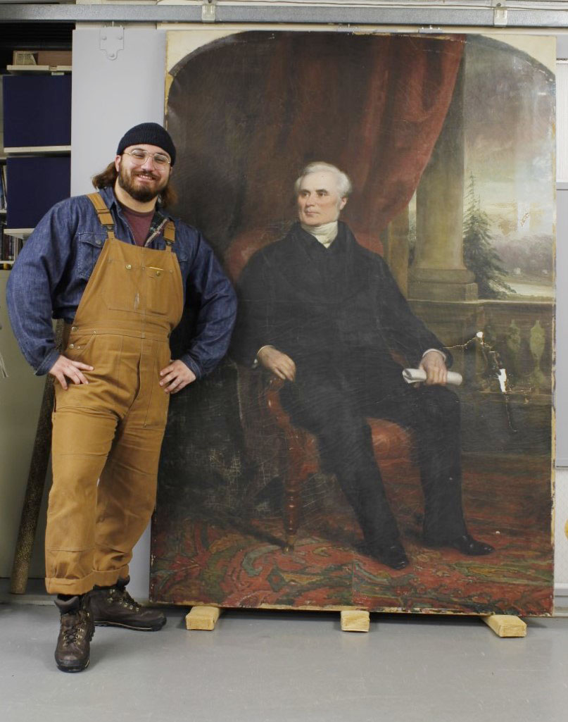 And there the portrait remained — not undisturbed, but we’ll get to that later — for 53 years. Beecham then began a long tour of campus that saw the portrait hung or stored in various places, lost from the written record for a time, and apparently kidnapped before ending up in the Owens Art Gallery, where its story piqued the interest of Colville House Curatorial Intern Jack Symonds (’21).