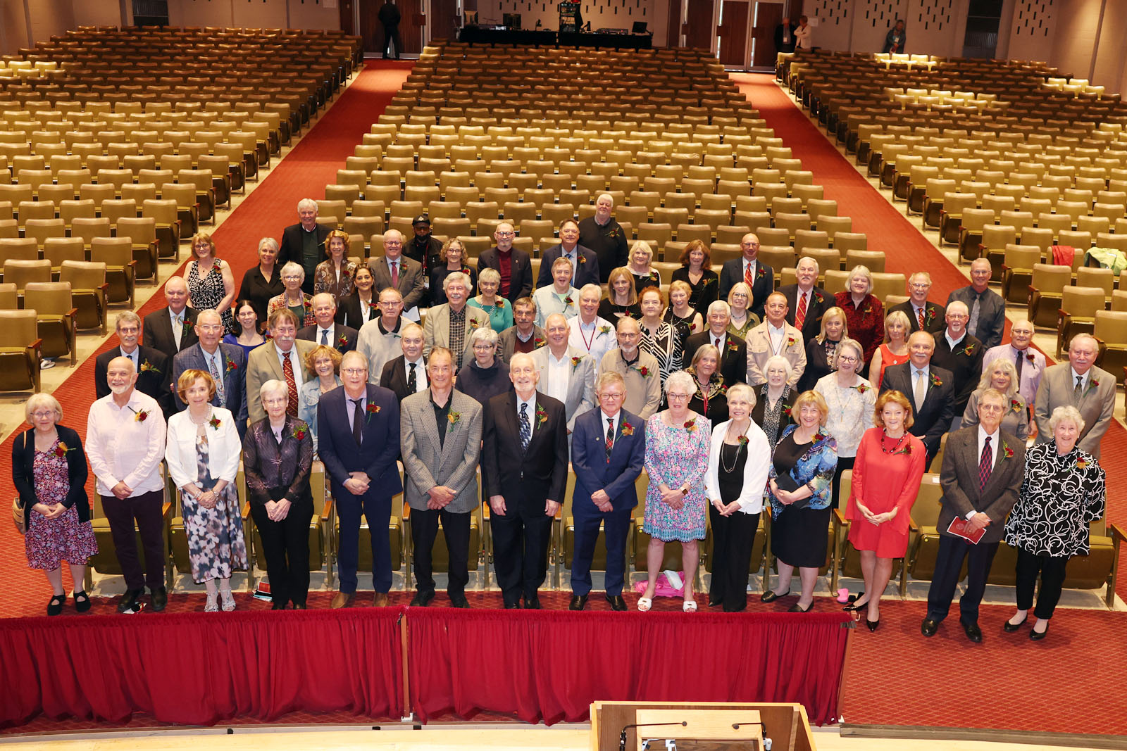 Row 3 (L-R): Cameron Hartling, Donna Minard Hartling, Rick Hayward, Ross Henderson, David Henry, Arnold Hussey, Dave Hutchison, Rita Hundson Kean, Harry Lamont, Fraser Livingstone, Dr. Gay Giffin MacDonald, Marilyn MacDonald, Robert MacFarlane, Rod MacInnis